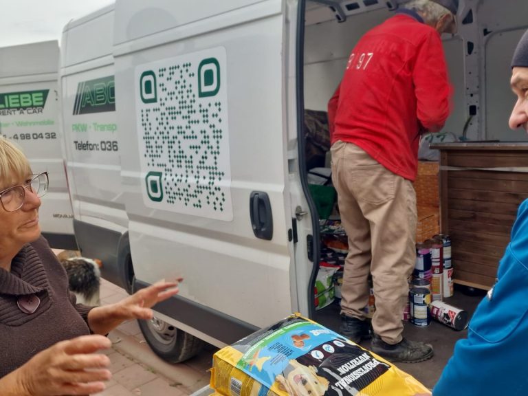 Bei Ramona konnten wir zahlreiche Futter- und Sachspenden übergeben. Zusätzlich erhielt sie 250 € für Futter und tierärztliche Versorgung – eine Hilfe, die sie dringend benötigt und die unmittelbar bei ihren Tieren ankommt.