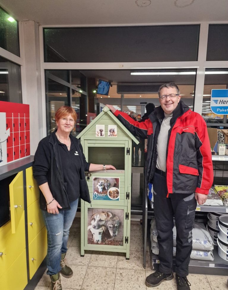 Wir freuen uns sehr, dass wir im Edeka in Bleicherode ein Futterhäuschen aufstellen durften. Dort sammeln wir Futterspenden für die Tierschützerinnen und Tierschützer sowie das Tierheim in Rumänien, die wir regelmäßig unterstützen.